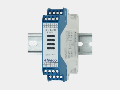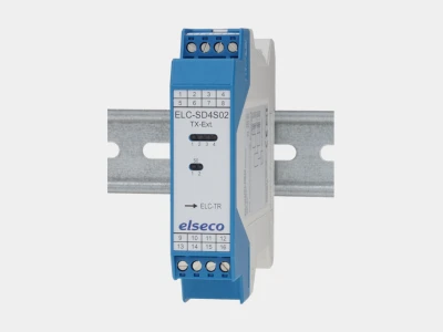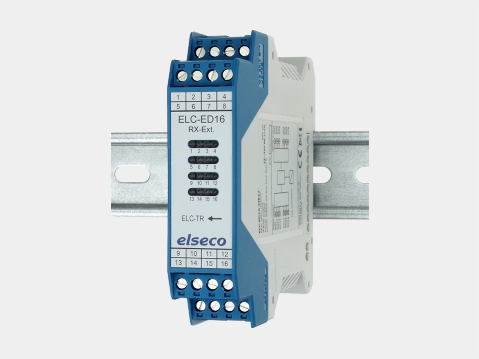 It is only necessary to ensure that the corresponding I/O expansion modules are plugged in the correct order on the transmitter and receiver side. Each I/O module occupies 16 bits of the 256-bit data package in the transmission protocol. With the I/O-modules ELC-SA1D4 and ELC-EA1D4 for analogue standard signals in particular, 12 bits (= resolution) are used for the analogue signal, which means that the 4 remaining bits can be used as 4 digital I/O signals.