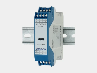 With the I/O-system ELC-TR, up to 256 signals (e.g. switching, control, clock, synchronous, fault signals or analogue measured values) can be transmitted unidirectionally or bidirectionally. The basic device is the ELC-TR-F-ME22-SFP transceiver, which can be equipped with various SFP modules for different fibre optic types (singlemode or multimode).